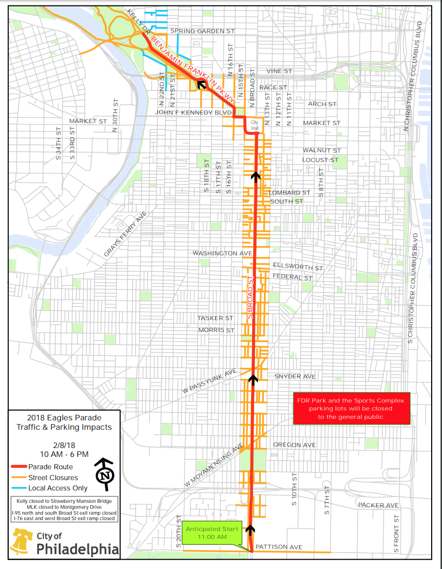 Eagles Parade 2018 Route Map And Street Closures For Super Bowl Celebration Sbnation Com