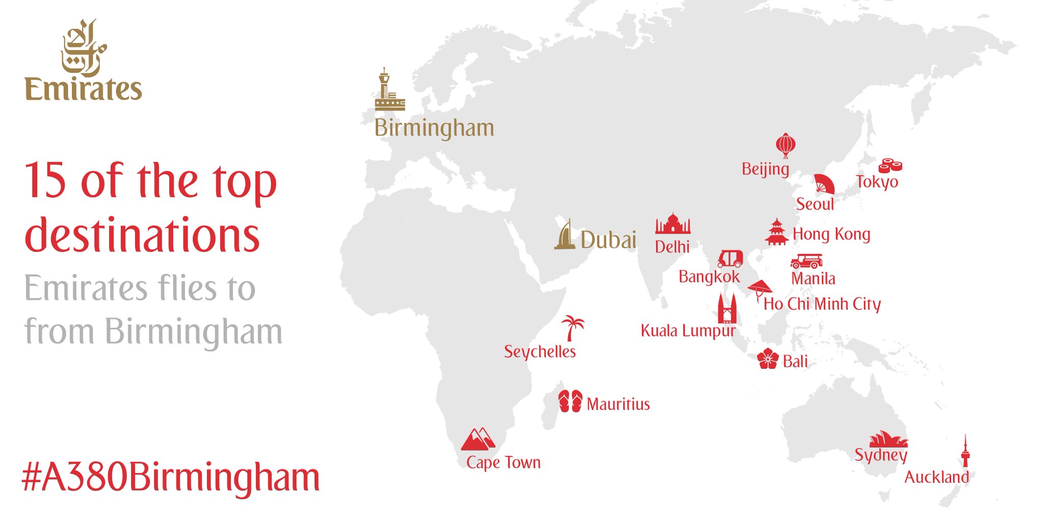 Emirates Airline On Twitter Here S A Snapshot Of All The Great Destinations You Can Go To From Birmingham Soon On An A380 A380birmingham Https T Co Sdpevdt3yv