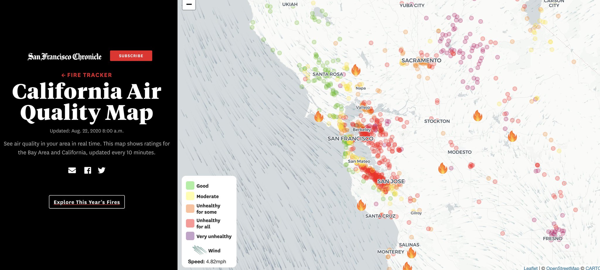 San Francisco Chronicle No Twitter Our Air Quality Map Shows In Real Time Locations Of Lnulightningcomplex Czulightningcomplex Bay Area Fires Wind Direction Speeds Air Quality Data From Local Sensors Smoke Forecast So You Can Assess How