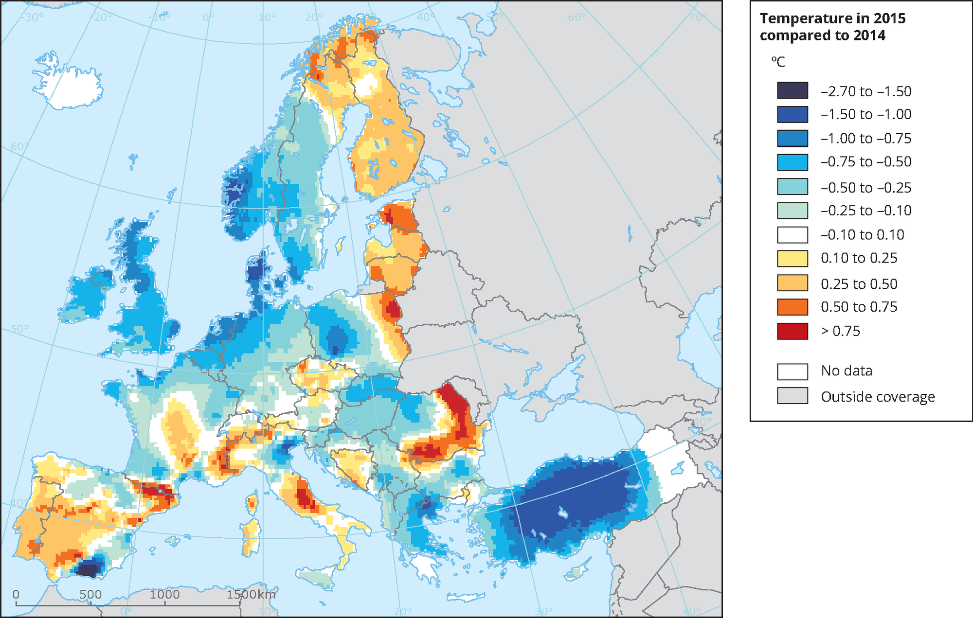 Mean Near Surface Temperature Change Between 2014 And 2015 In Europe European Environment Agency